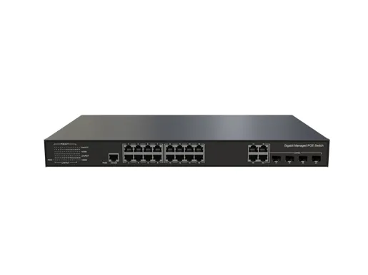 Este switch possui portas PoE 16x 10/100/1000Base-T e portas combo 4x Gigabit (RJ45/SFP), fornecendo conectividade flexível para redes de negócios modernas. Cada porta PoE pode fornecer até 30W, permitindo suporte contínuo para telefones IP, pontos de acesso sem fio, câmeras IP e outros dispositivos habilitados para PoE sem a necessidade de adaptadores de energia separados. O gerenciamento da camada 3 Lite fornece segmentação de VLAN, QoS e roteamento básico, tornando-o ideal para redes SMB e corporativas onde energia confiável e gerenciamento simplificado são essenciais. Suas portas RJ45 suportam auto - MDI/MDIX e encaminhamento de velocidade por fio para transferência de dados eficiente. Empregando o método de armazenamento e encaminhamento junto com a tecnologia QoS, ele garante a alocação racional de largura de banda por porta.